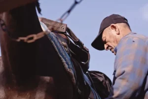 I also took “Golan” (a horse I had trained to a high level using this technique) to a Trail Class competition (an earlier and simpler version of what we now call Extreme Cowboy Race) and demonstrated the technique’s ability to enable the horse I trained to successfully complete all the obstacles. I rode Golan — and with the ranch team — we crossed the country from end to end while I rode using only the Natural Connection technique, without a bit, without reins, a halter, a rope around the neck, or any auxiliary equipment at all. (I did something similar with the horse “Shon” in 2007 with friends, riding him with no equipment whatsoever on his head or neck.)